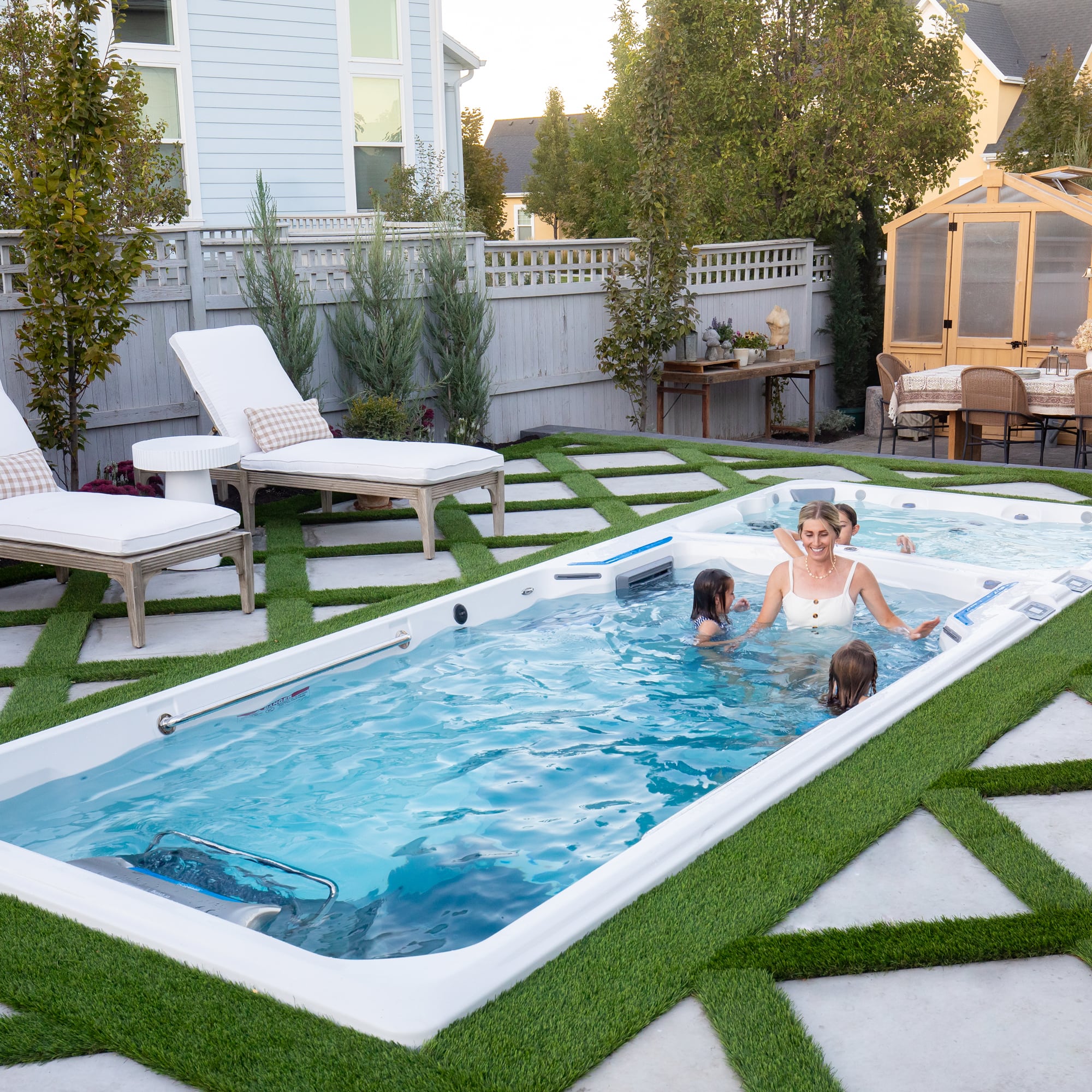 Some people are attracted to the numerous health and wellness features they offer and others like the convenience they provide. Regardless of whether you’re creating a staycation-worthy backyard or an all seasons pool™ option, swim spas can increase the amount of fun, relaxation and fitness level for everyone in your family.