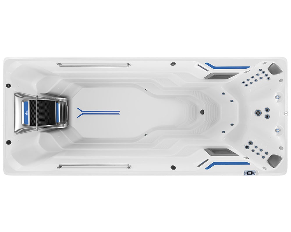 A swim spa combines the benefits of a swimming pool and a hot tub in one compact, energy-efficient unit. You can swim against a steady current for exercise or relax in the warm water for hydrotherapy and recovery.