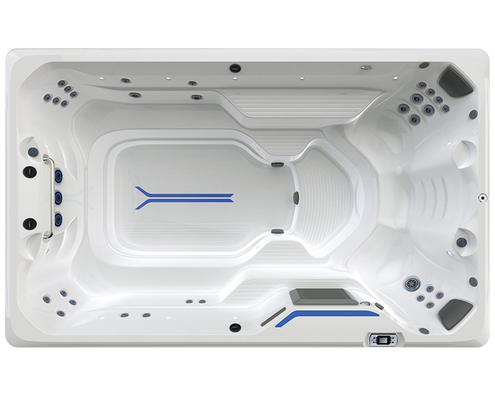 A swim spa combines the benefits of a swimming pool and a hot tub in one compact, energy-efficient unit. You can swim against a steady current for exercise or relax in the warm water for hydrotherapy and recovery.
