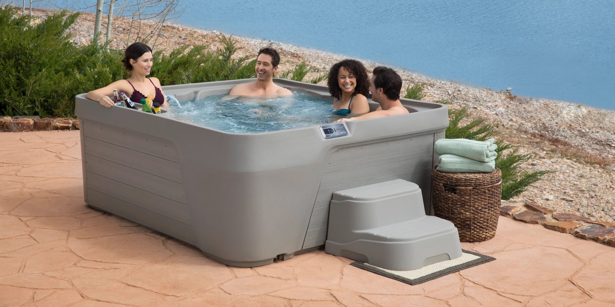 The Straight Step makes entering and exiting the spa safe and easy. Straight edge lines up perfectly with your Freeflow® Spas hot tub.