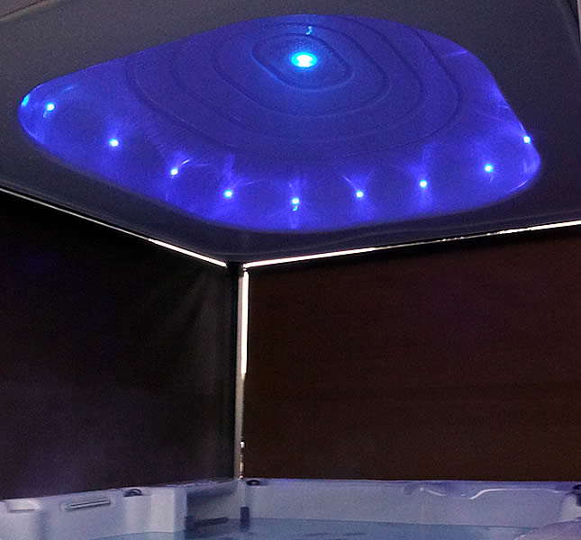 The DEL lighting system was designed to create a warm, friendly atmosphere and relaxing ambiance based on a combination of 7 carefully-chosen colours. (Optionally, this system can be powered from stored solar energy!).